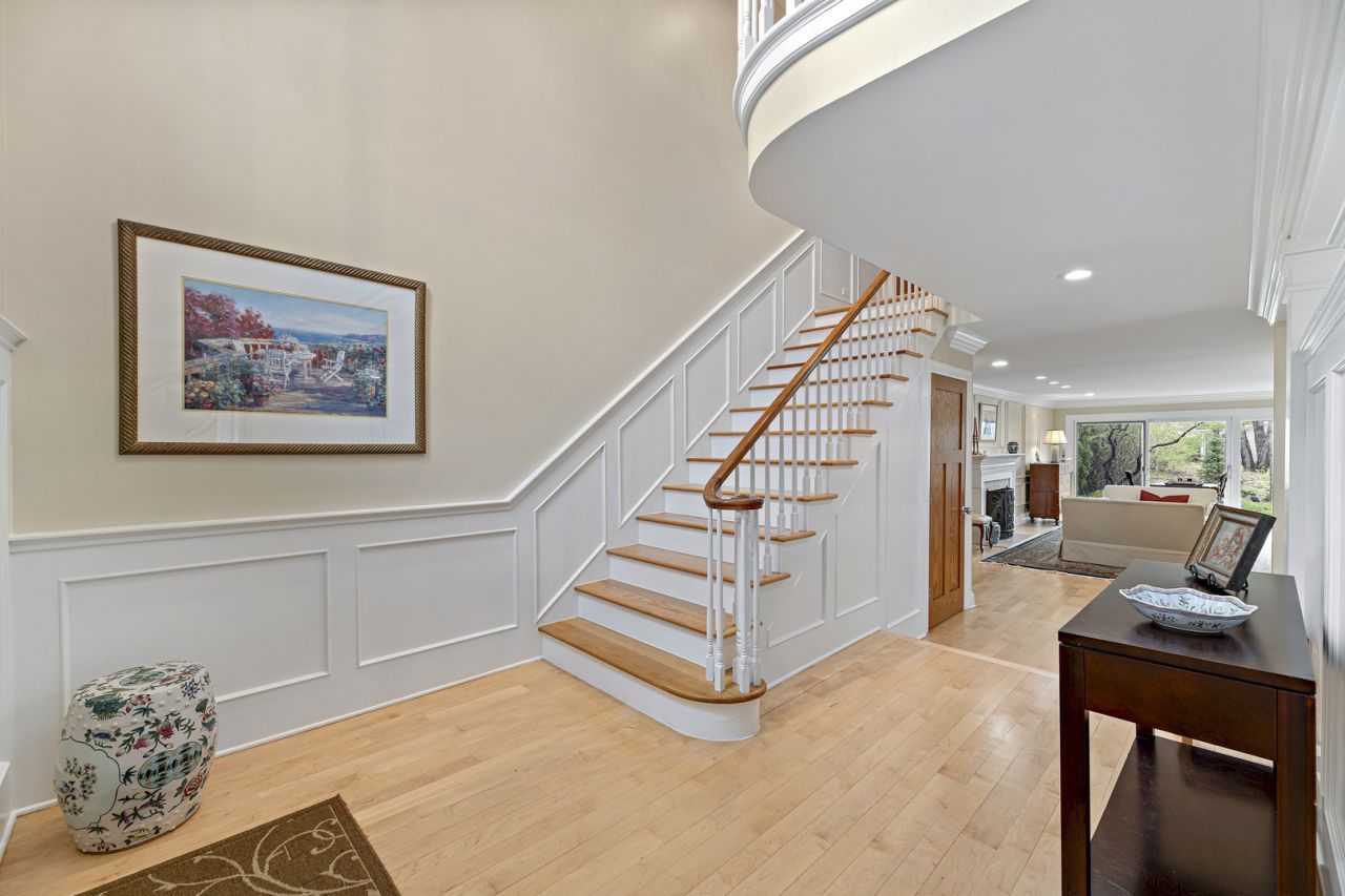 Wonderful Home at the end of a Cul-de-sac with Gorgeous Views from Every Window! As you step inside, the 2-story Foyer and Open Flow Design set the tone for this Exceptional Property. Flooded with Natural Light and Beautiful Hardwood Floors throughout, Each Space Seamlessly Connects, Inside and Out! The Gourmet Kitchen boasts a Large Granite Breakfast Bar, High End Appliances and Tons of Cabinet Space. Dining Options include the Breakfast Room and Separate Dining Room with a Wet Bar and Sliders to the Yard. Relax in the Family Room with Vaulted, Wood-Beamed Ceilings and a Floor to Ceiling Fireplace, Living Room with 2nd Luxurious, Stone Fireplace and a Wall of Glass bringing the Outside In. Beautiful Hardwood Floors continue to the 2nd Floor, with the Spacious Primary Suite with a Spa-like Bath and Convenient 2nd Floor Laundry. The Finished Basement offers Additional Versatile Space with a Large Rec Room, Bedroom and Full Bath. The Outside Space is just as Lovely, with a Private Brick Paver Patio and Backyard, Surrounded by Nature. Located in the Highly Desirable Wood Creek Courts Neighborhood, this Home combines Exquisite Finishes, Thoughtful Design, and an Unparalleled Setting.